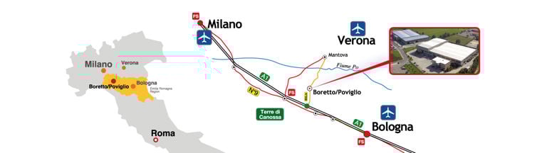 DA MILANO: Prendere l’autostrada A1 in direzione BOLOGNA. Uscire a TERRE DI CANOSSA – CAMPEGINE. DA BOLOGNA: Prendere l’autostrada A1 in direzione MILANO. Uscire a TERRE DI CANOSSA – CAMPEGINE.